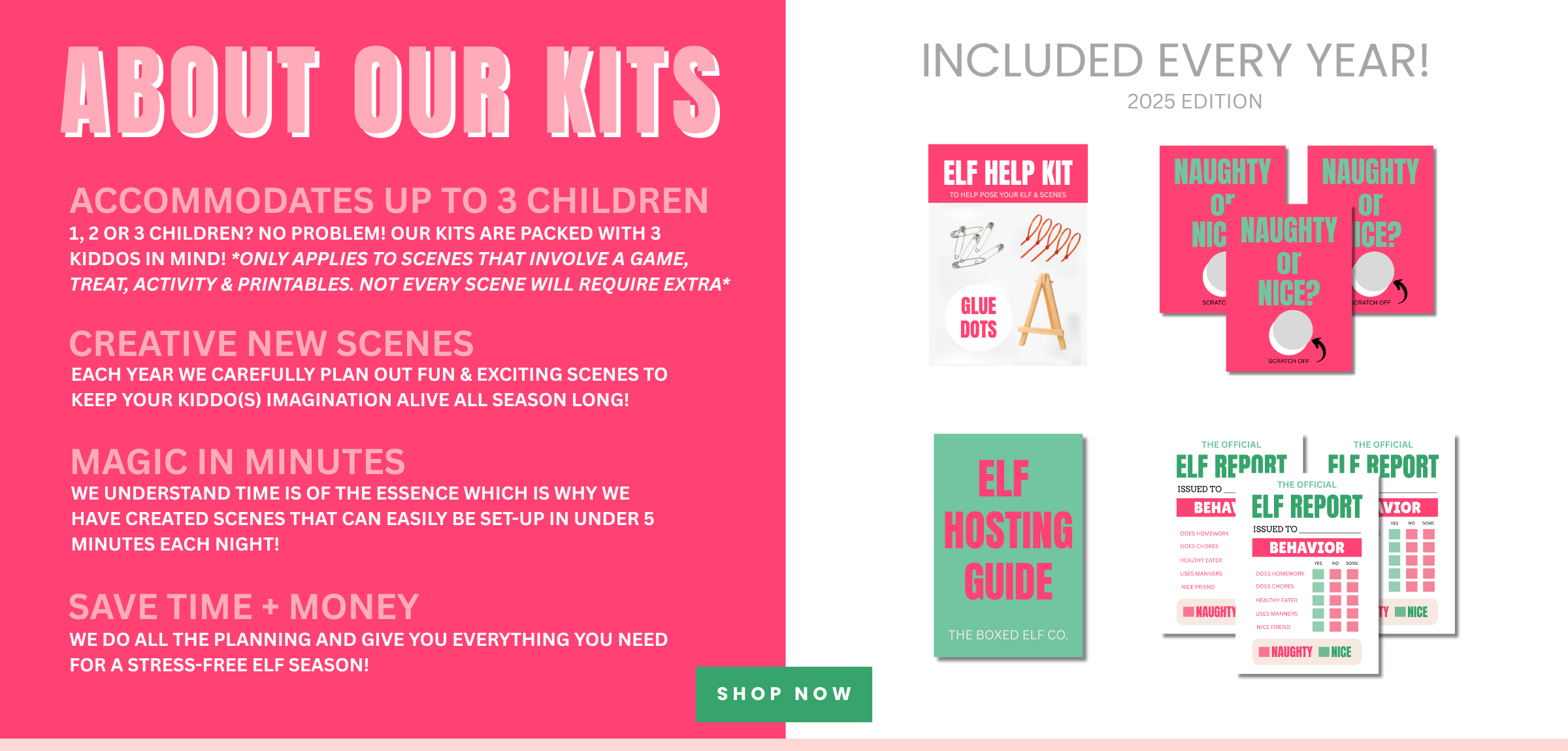 - KristineLove this Elf box! Not only did it save me time and money, but gave me so much relief at the busiest time of year for me. One less thing I have to worry about. Thank you for making these magical kits!